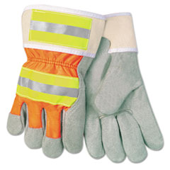 Memphis™ Luminator Reflective GlovesLuminator Reflective Gloves, Economy Grade Leather, Gray-Orange-Yellow, Large