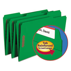 SmeadĀ® Top Tab Colored Fastener FoldersFolders, Two Fasteners, 1/3 Cut Assorted Top Tab, Legal, Green