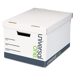 Universal One⢠Medium-Duty Easy Assembly Lift-Off Lid Storage BoxQuick Set-Up Lift-Off Lid Storage Box, Letter/Legal, Fiberboard, White, 4/Carton